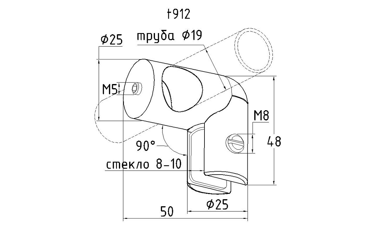 Держатель стекла сквозной боковой, для трубы 19 мм, черный, t912 Bl