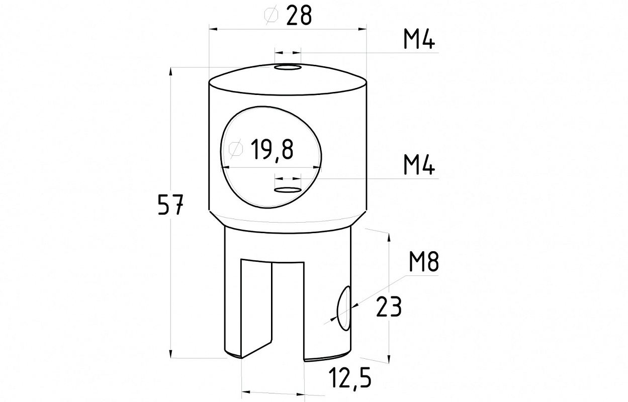 Держатель стекла сквозной боковой, для трубы 19 мм, черный, t912 Bl