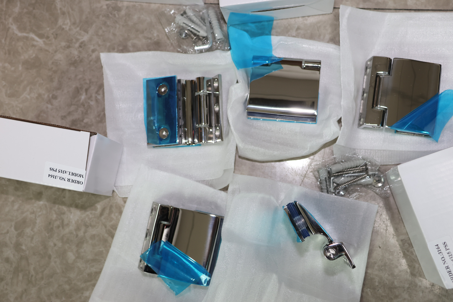 Петля односторонняя стена-стекло 90° , без фиксации и самозакрывания, полированная. Выдерживает нагрузку 35 кг на две петли. Материал - нержавеющая сталь.