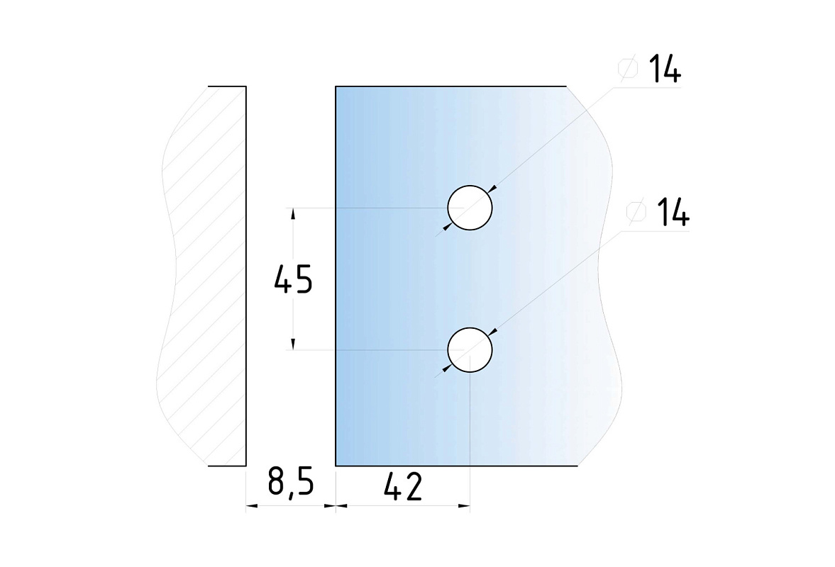 Стекло с готовым вырезом 14, фиксируется с помощью саморезов или винты со шляпками, закручивая используется уплотнитель. Также, если между стена-стекло остаётся щель, то используем уплотнитель.