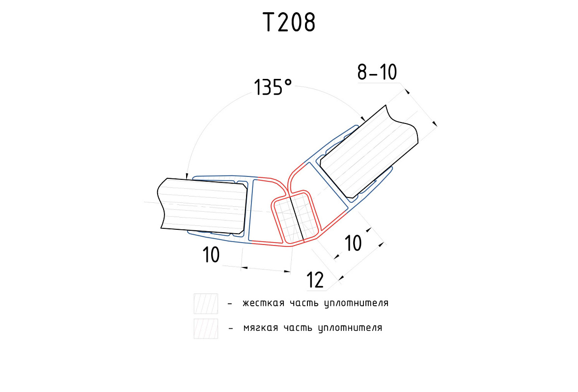 Комплект уплотнителей для стекла в душевую кабину (2 шт.), стекло-стекло 8 мм, с магнитом 135°, 2200 мм t208