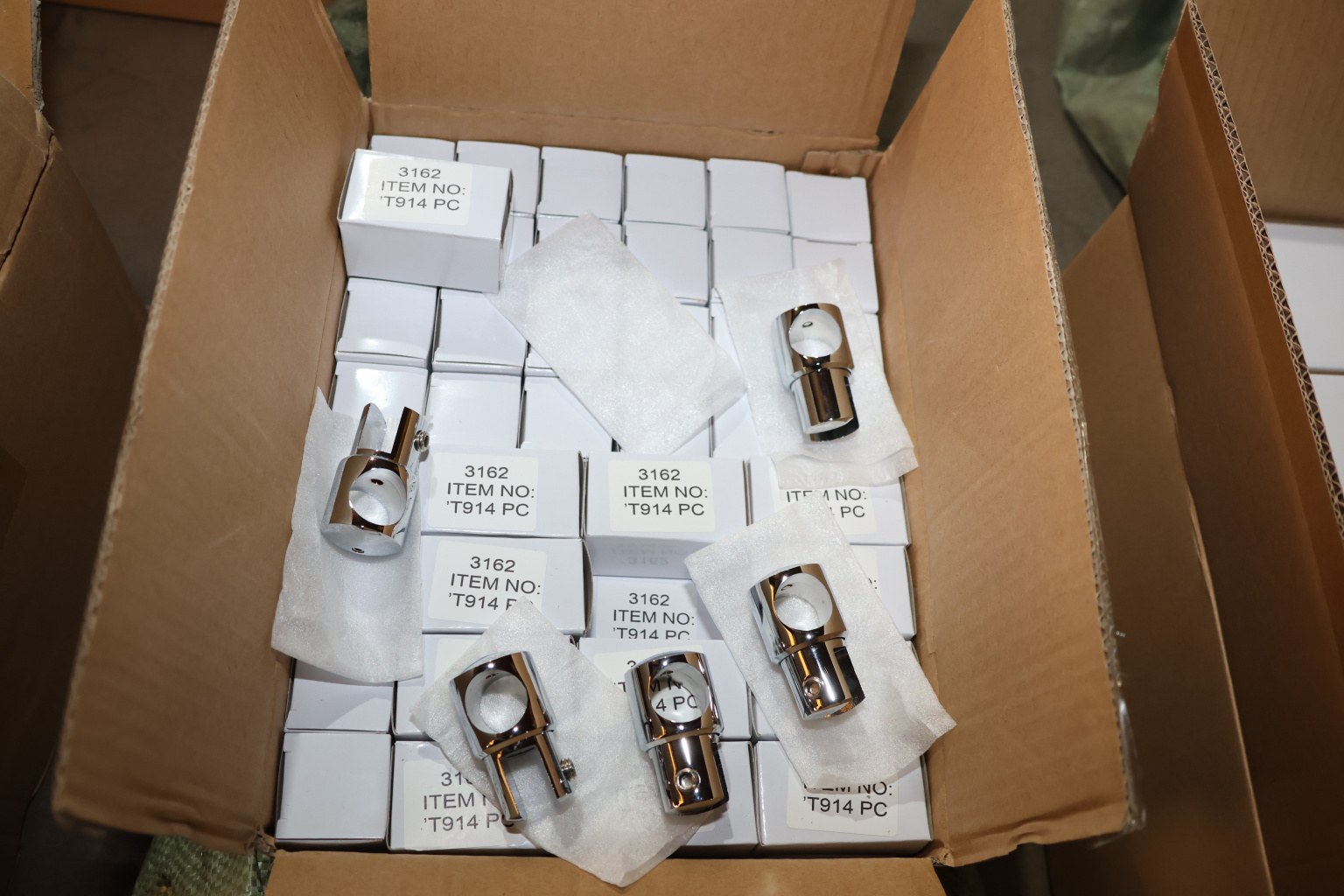 Крепежный элемент труба-стекло. Предназначен для соединения штанги в душевых кабинах со стеклом на любом участке штанги. Материал - латунь-хром, поверхность - полированная