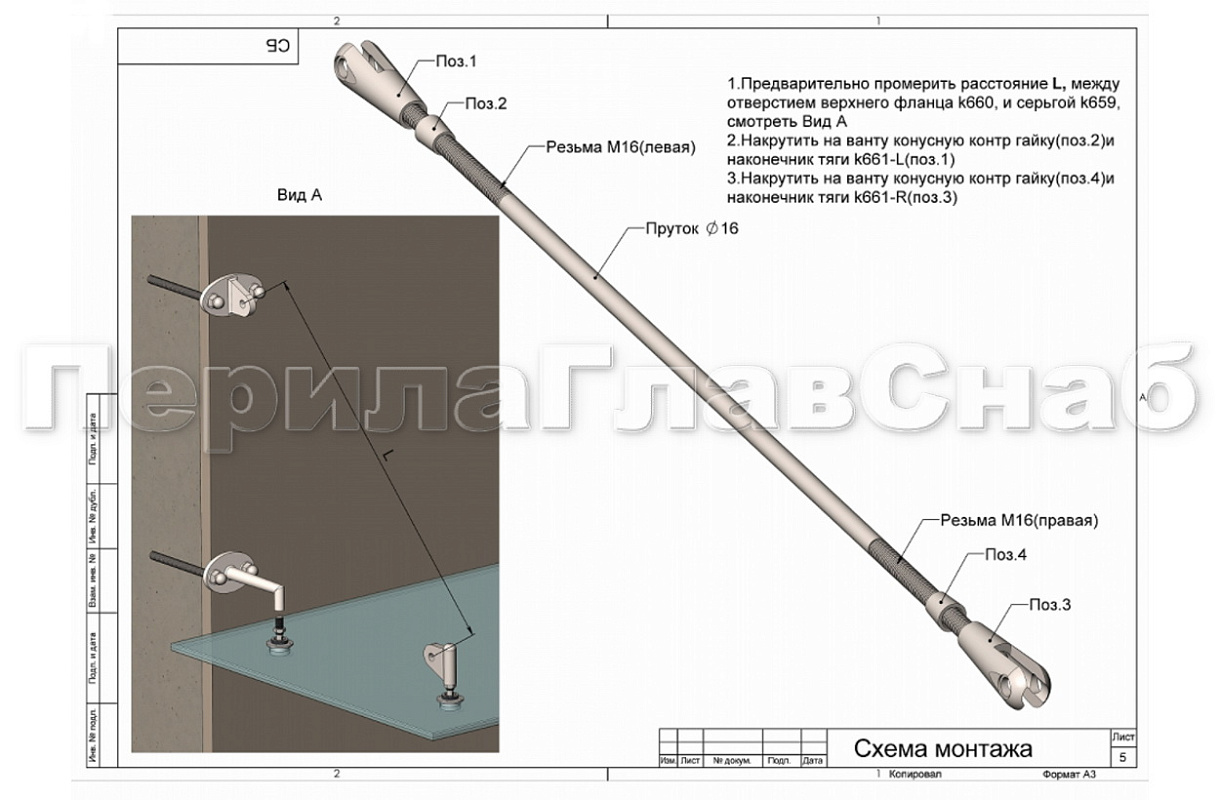 Вант (тяга) для козырька М16, длина 1450 мм (AISI 304) k668-16-1450
