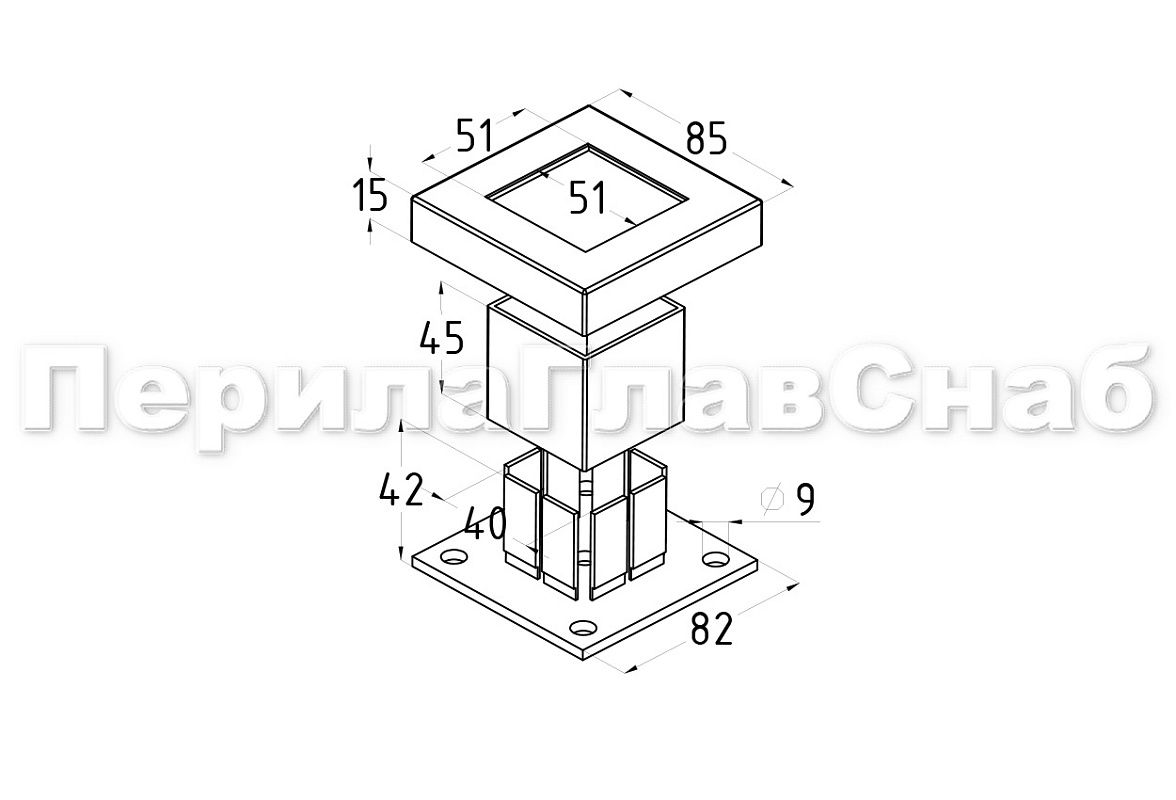 Цанга для стойки 40х40мм, под анкер 8 мм или на 4 анкера М8. Для надежной установки на деревянную ступень, плитку, бетон