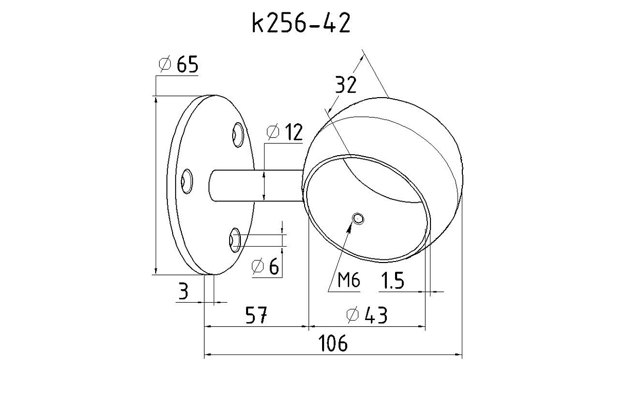 Крепление шаровидное сквозное обладает серьезным запасом прочности, благодаря толщине металла и литьевой технологии, по которой данный пристенок изготовлен. Для надежной фиксации поручня применяется обхват внутрь которого заправляется труба нержавеющих перил пристенного поручня.