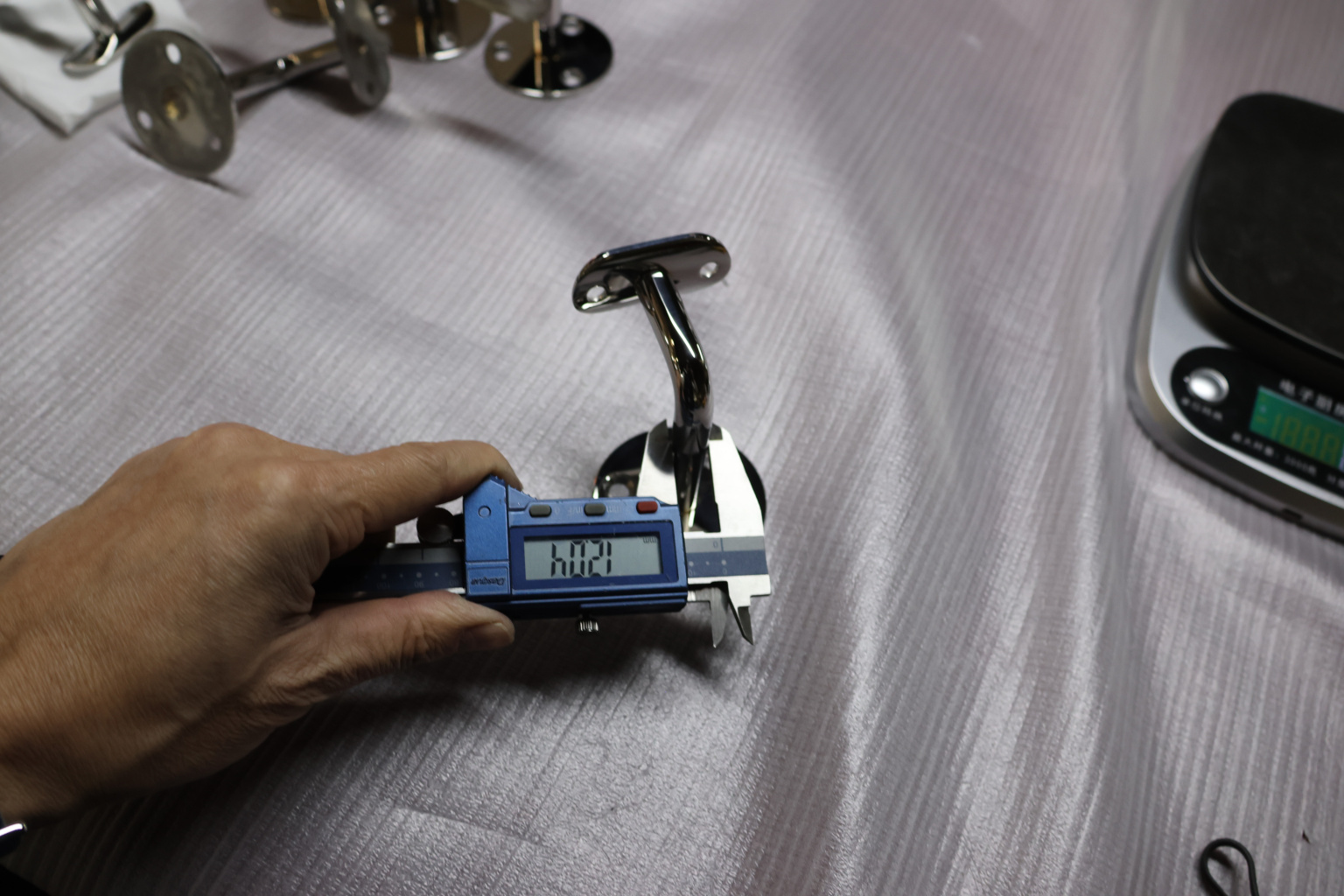 Благодаря оптимально подобранному выносу, пристенный поручень достаточно удален от поверхности стены, чтобы не задевать скользящей вдоль трубы поручня рукой идущего по лестнице человека. Но при этом поручень располагается близко к стене, дабы не сужать свободное пространство полезной ширины лестничного марша. Габариты: вынос 70х45 мм, Ø60х3мм, ложемент 25 х 45 х 2 мм
