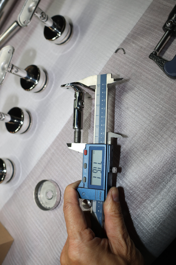 Наконечник палец с алюминиевой системой фиксации на стойке Ø42.4х1.5 мм, регулируемым ложементом под поручень Ø50.8 мм, полированный, литой, нержавеющий AISI 304 k206