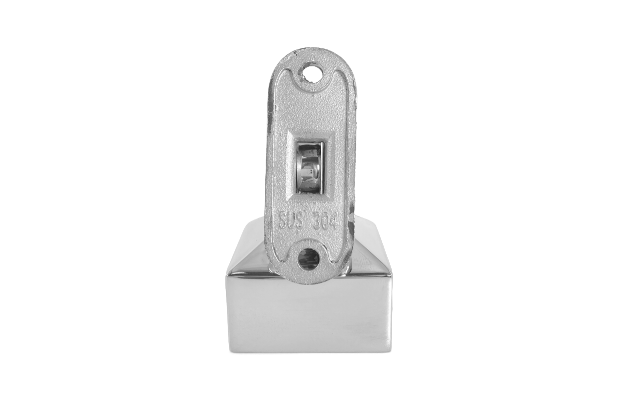 Наконечник на стойку 40х40, с ложе под ПЛОСКОСТЬ. Деталь с регулируемым ложементом, что позволяет монтировать её как и на горизонтальных площадках, так на лестничных маршах.