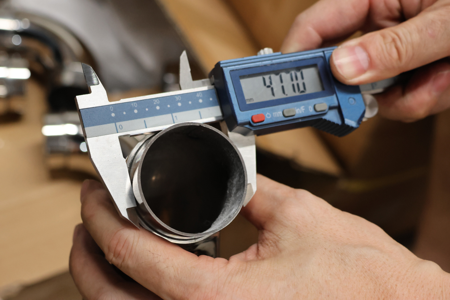 Как правило, в качестве поручня применяется труба из нержавеющей стали толщиной стенки 1.5 мм. Наша модель самосборного отвода сделана из высокопрочной стали со стенкой 1.45 мм с зазором для надежной установки на клей.