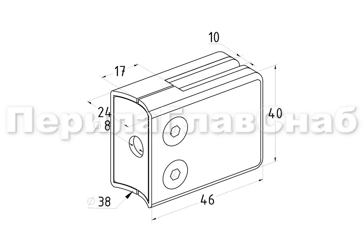 Стеклодержатель штампованный, под стекло 10 мм (5+5 мм),  квадратный, под стойку Ø38.1 мм (40х24х48), полированный. Марка стали -  AISI 304