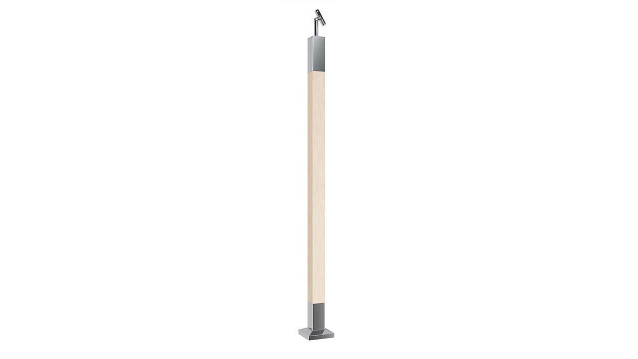 Готовая стойка 40х40х950 мм, деревянная буковая нелакированная, со вставками из нержавеющей стали полир. 2х100 мм k740-9-П