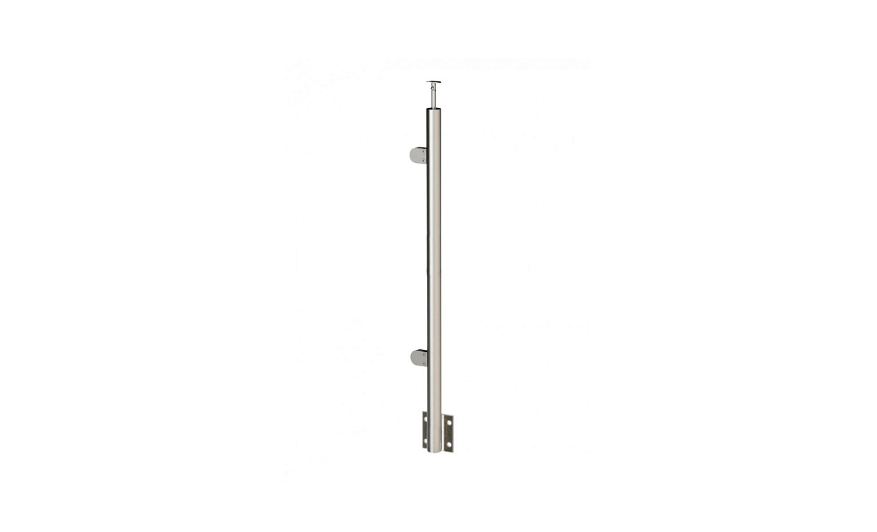 Стойка круглая Ø38.1: 2 литых зажимных стеклодержателя, полированная, боковой крепеж, высота 1200 мм (AISI 304) k756-R