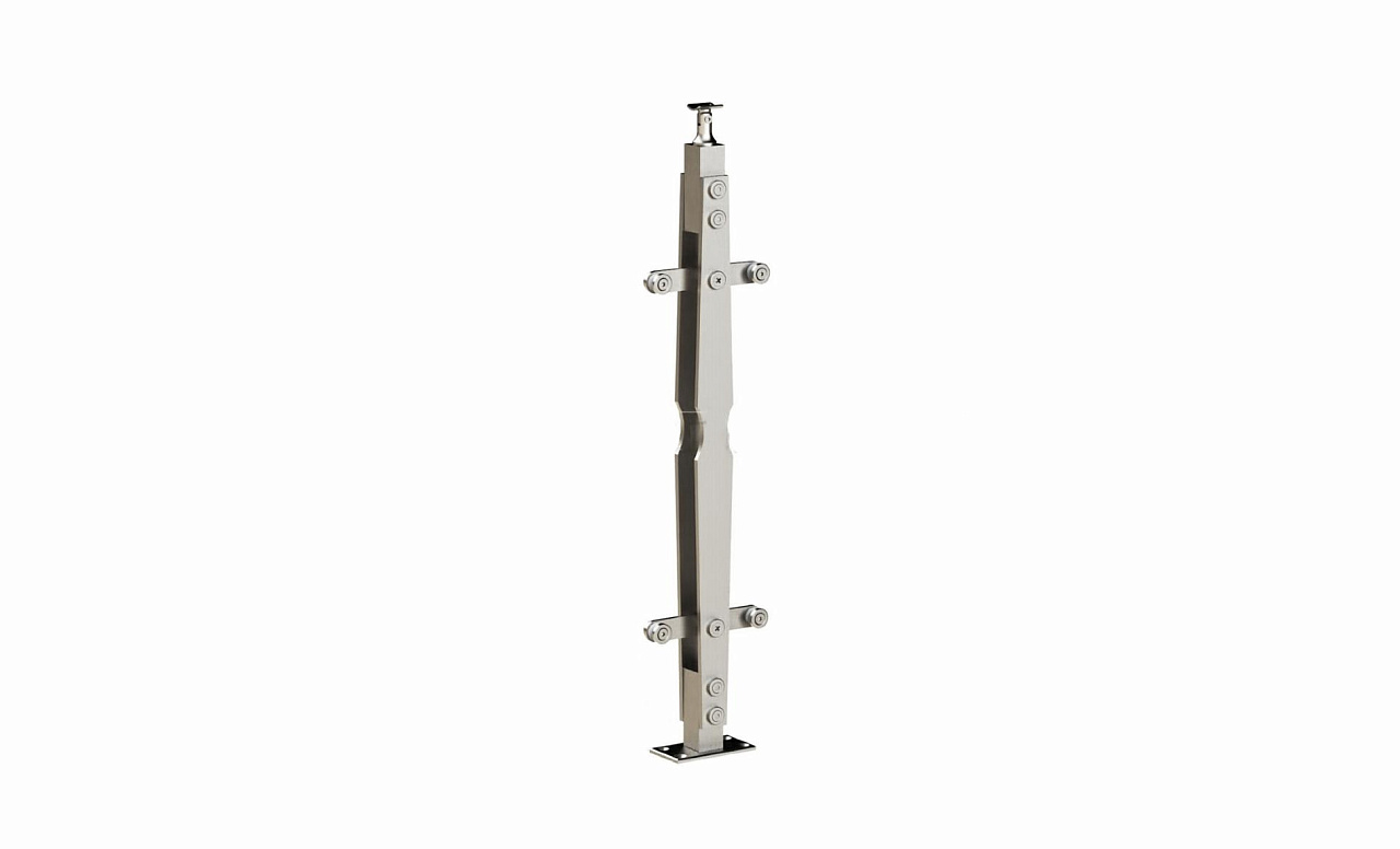 Стойка квадратная 40х40: 4 литых стеклодержателя, полированная, высота 950 мм (AISI 304) k746 купить в Тюмени