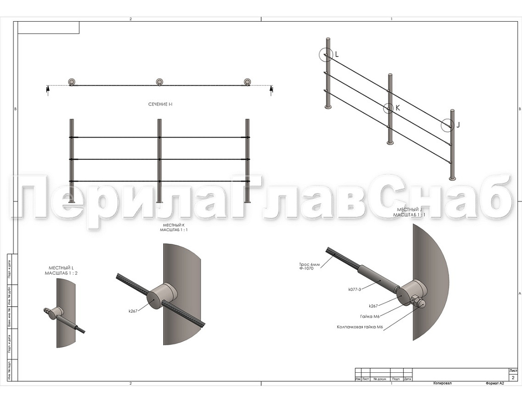 Благодаря внешнему сходству бочонка с ригеледержателем создается имитация ограждения с ригелями. Но роль ригелей выполняет не трубка, а тросик из нержавеющей стали.