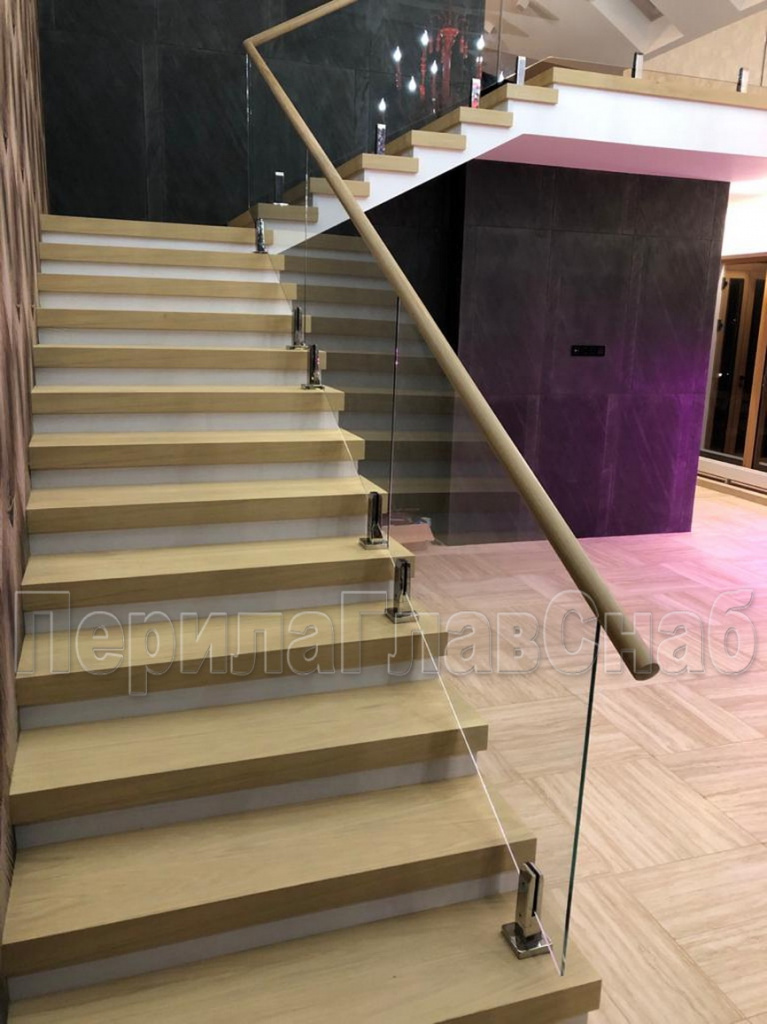 Конструктив:  дубовые  перила на калёном  стекле  10 мм, с  министойками