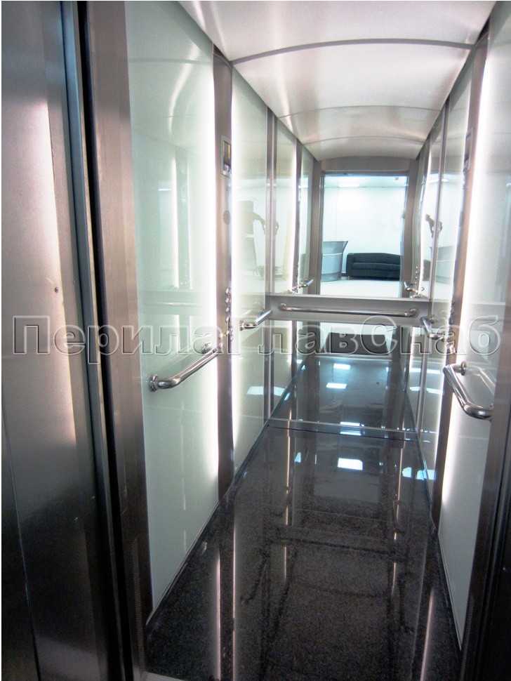 Облицовка закаленным матовым стеклом кабины лифта и установка внутри дополнительного поручня безопасности для инвалидов и детей из категории маломобильных граждан выгоднго отличает интерьер сервисного оборудования здания от аналогичных устройств в других компаниях.Хотите отличаться, хотите быть лучшими?Звоните, мы поможем реализовать самые смелые проекты и желания: +7 (495) 646-10-70