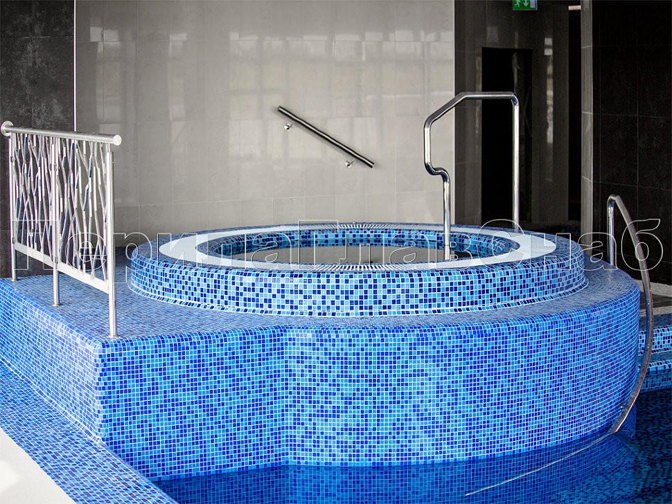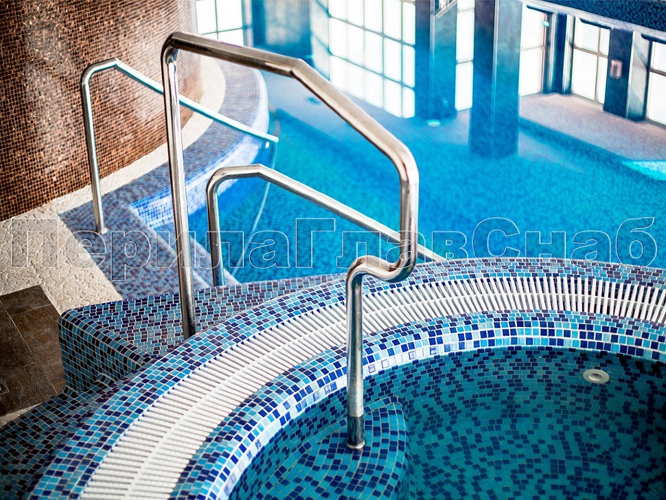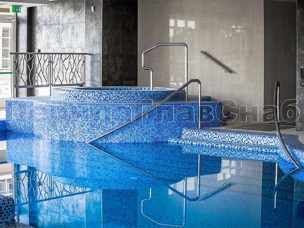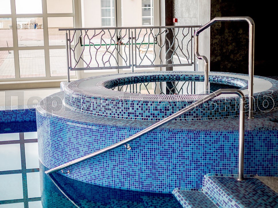 Особенностью объекта являются ограждения в бассейне с уходом под воду, что придает дополнительную функциональность и безопасность всему пространству.