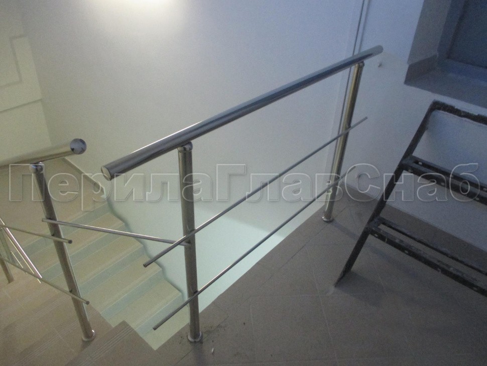 Нержавеющее 2-х ригельное ограждение маршевой лестницы в административном здании.
