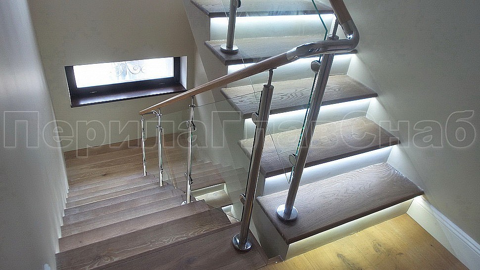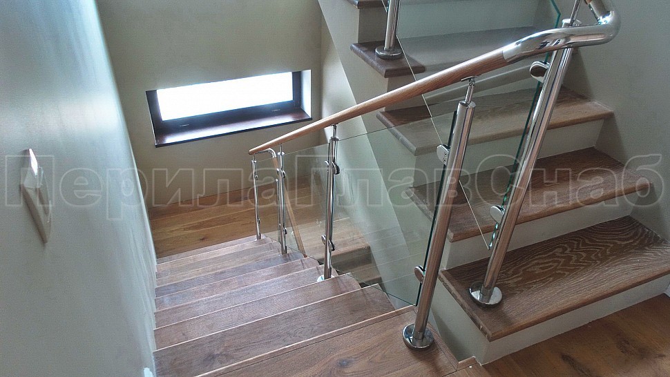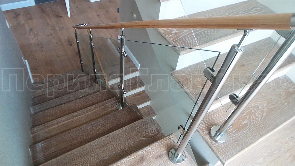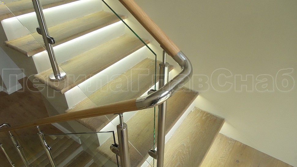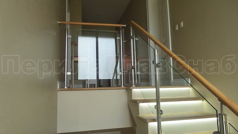 ограждения из стекла. Стеклянные ограждения с деревянным поручнем изящно