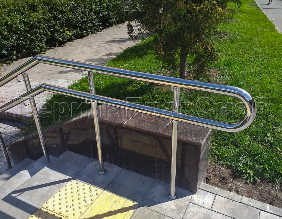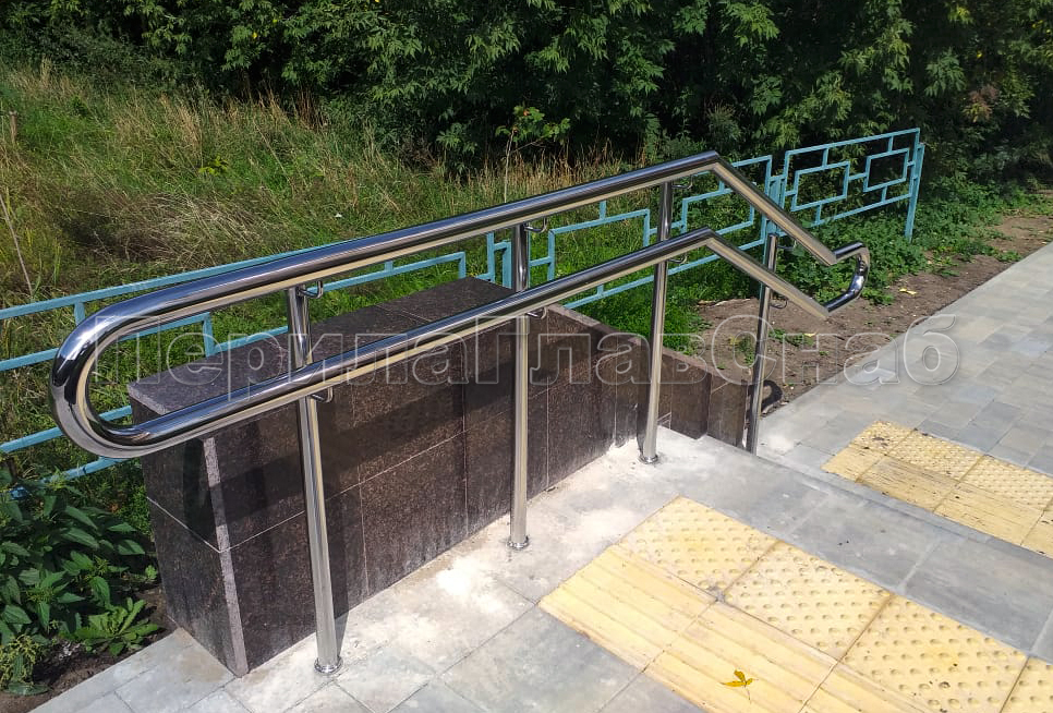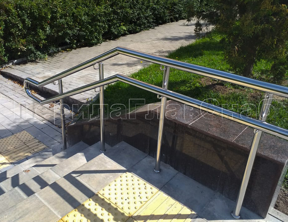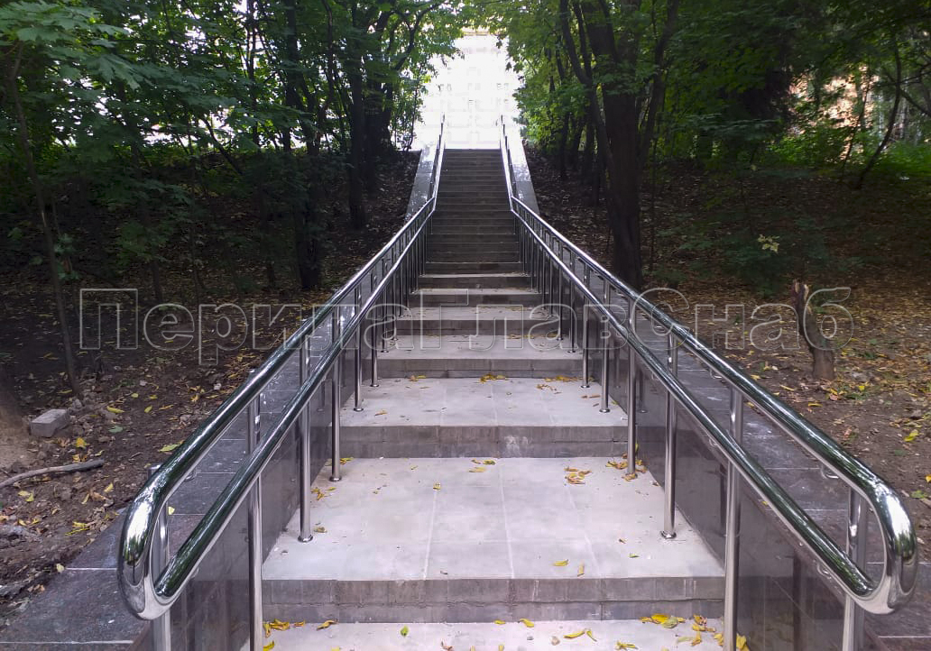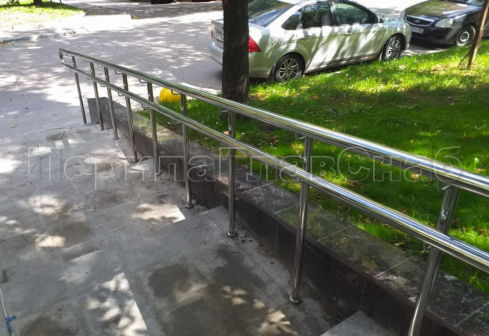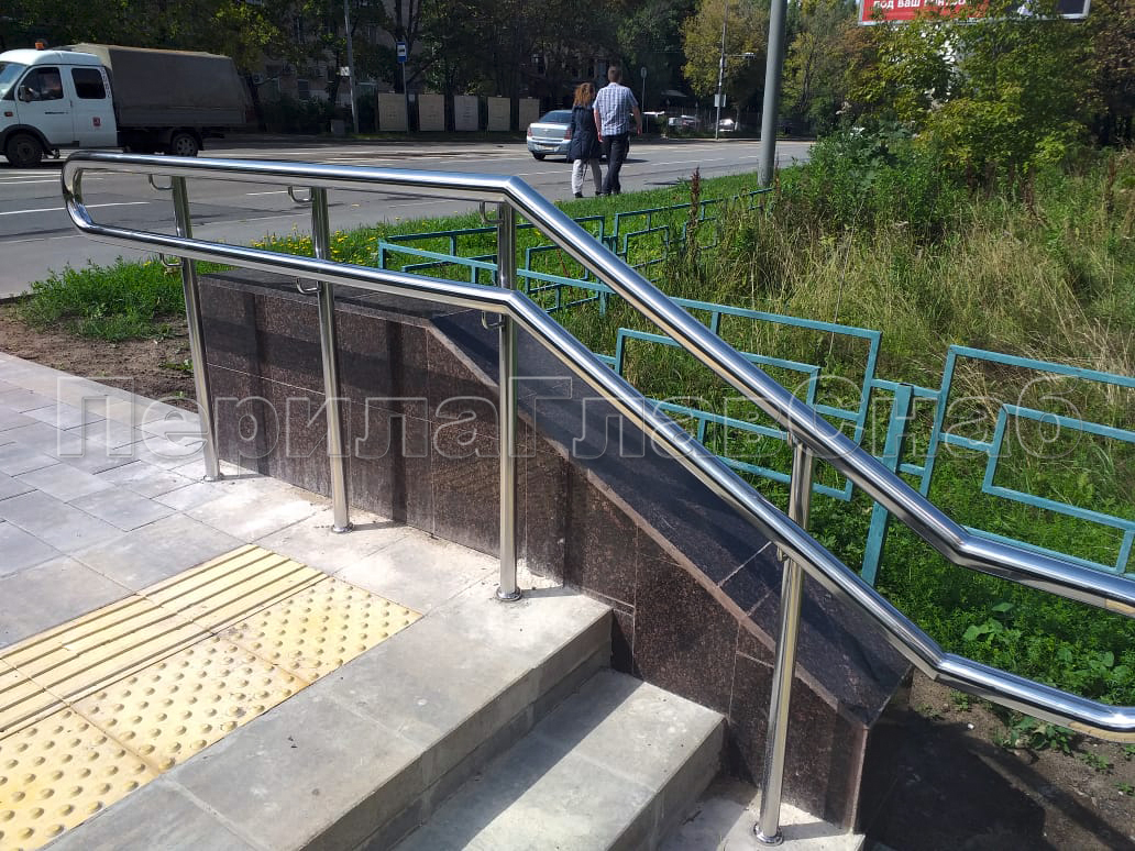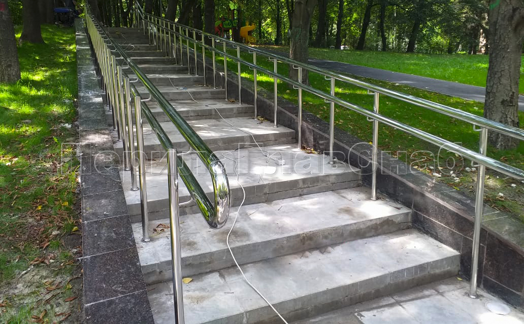 Наша компания «ПерилаГлавСнаб» выполнила заказ на изготовление и монтаж ста пятидесяти метров погонных ограждений из полированной нержавеющей стали, в рамках программы по благоустройству дворовых территорий города Москвы. Так как ограждения устанавливались на улице, мы использовали нержавеющую трубу и комплектующие марки стали Aisi 304. Ограждения состояли из следующего конструктива: