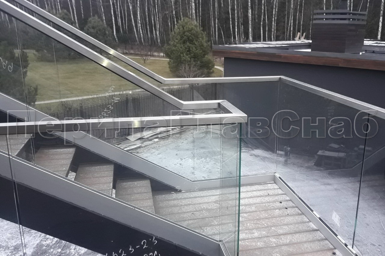 Основными критериями выбора ограждений от заказчика были следующие пожелания: Ограждения должны соответствовать требованиям безопасности и в то же время конструкция должна быть визуально лёгкой и прозрачной. Нами было предложено Цельностеклянное ограждение, которое состояло из следующего конструктива: Алюминиевый анодированный профиль собственного производства, который был разработан нашим конструкторским отделом, так же профиль прошел испытания на нагрузки и был сертифицирован. Закаленное стекло толщиной 10мм с евро кромкой и для придания жесткости конструкции сверху на стекло через уплотнительную резинку был установлен поручень с пазом на стекло из шлифованной нержавеющей стали. При монтаже использовались различные технологии крепления профиля к основанию так как оно отличалось друг от друга. На одном участке основанием был кирпич на втором металлический швеллер, на третьем участке основание состояло из так называемого «Пирога»: бетон, утеплитель, на утеплитель уложена гидроизоляционная мембрана. Для того чтобы установить профиль в «Пирог» нашим инженером- конструктором был разработан узел крепления профиля. Благодаря конструкторскому решению, мы установили профиль на данном участке без потери жесткости конструкции и сохранили гидроизоляционные свойства мембраны. Работы по изготовлению и монтажу ограждений под ключ, были выполнены в течении тридцати рабочих дней.