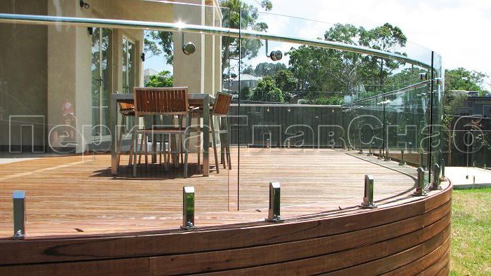 Цельностеклянные перила для балконов и лоджий с креплением на министойки.
