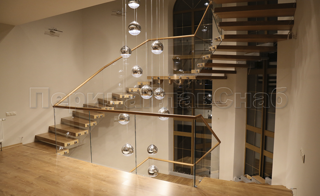 Латунные перила под золото в Тюмени. Готовые проекты ПерилаГлавСнаб