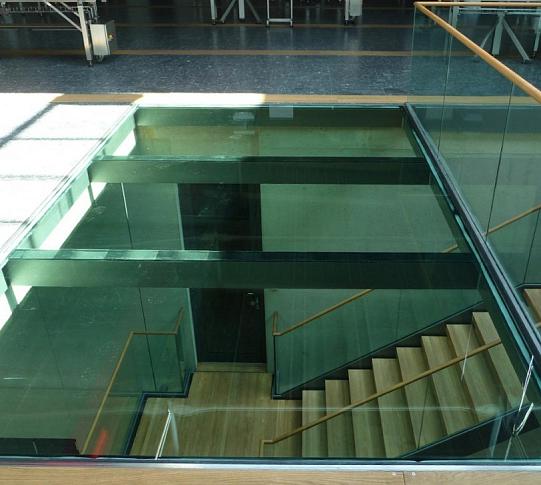 Стеклянный потолок на межэтажной площадке